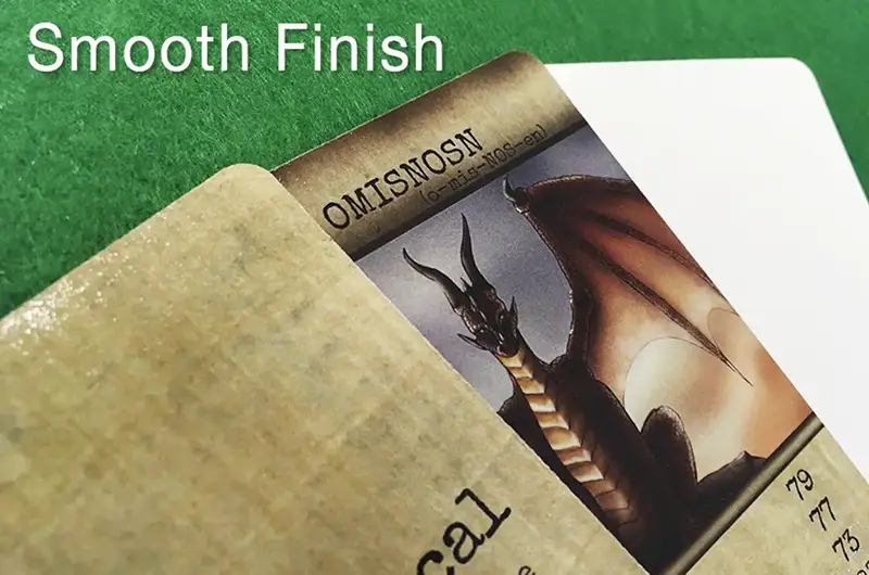 A card finish is the final coating or texture applied to a card during the manufacturing process. It affects how the card feels in your hand, how it slides against other cards, how well it shuffles, and how long it resists wear and tear. While there are many types of finishes in the card-making world, two stand above the rest for quality and performance: Linen and Smooth.